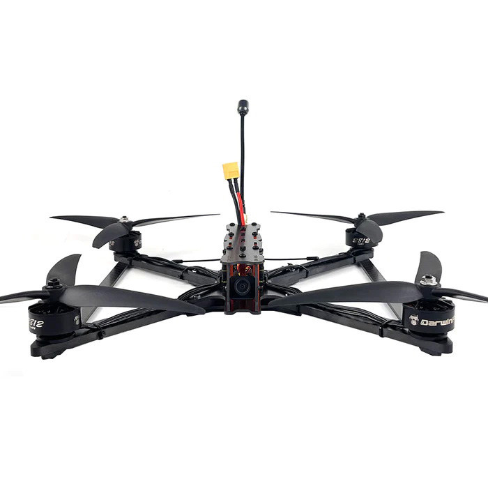 DarwinFPV - видатні виробники FPV-дронів та аксесуарів для них. Розробники постійно вдосконалюються, впроваджуючи нові технології у світі квадрокоптерів. Одним із результатів таких досліджень став вихід моделі X9 - FPV-дрон, який став найгабаритнішим пристроєм у лінійці квадрокоптерів даного виробника. Розміри квадрокоптера складають 280 мм x 295 мм x 50 мм. Завдяки великим габаритам та міцній конструкції рами, виготовленої з сучасних ультраміцних матеріалів, виробники зуміли створити дрон з великою вантажопідйомністю - до 2,5 кг! Квадрокоптер оснащений двигунами 2812, аналоговою відеопередачею потужністю 1000 мВт, системою управління польотом F4 та регулятором швидкості 100 А. Це справжній літальний монстр, який здатний взлітати разом з вами у будь-який час і в будь-якому напрямку! Він без страху відноситься навіть до непогоди. Конструкція дрону забезпечує стійкість до вітру 7 рівня і дозволяє йому підніматися на вражаючі 6000 м у висоту.